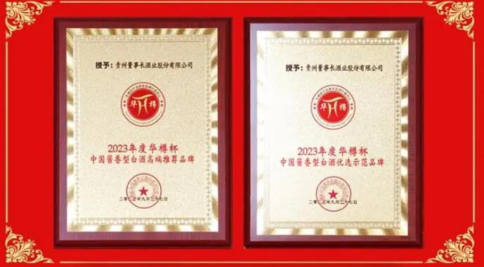 在品牌價值持續增長的同時,董事長酒還被“華樽杯”組委會授予“2023年度華樽杯中國醬香型白酒高端推薦品牌”、“2023年度華樽杯中國醬香型白酒優選示范品牌”兩大榮譽稱號。